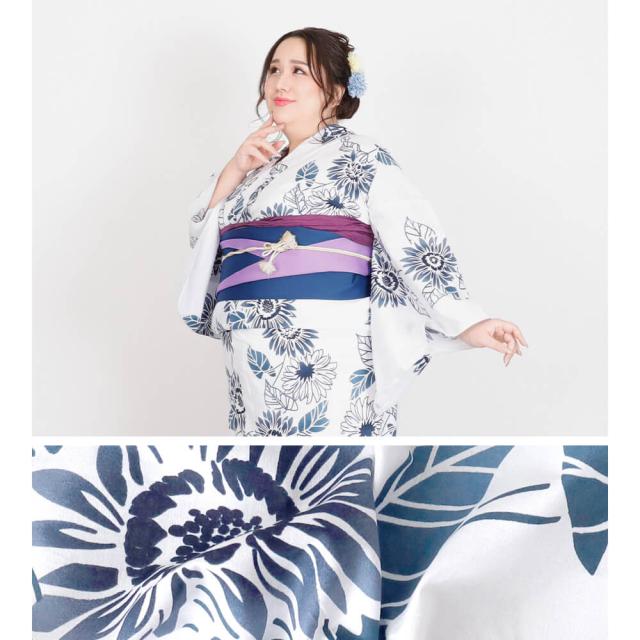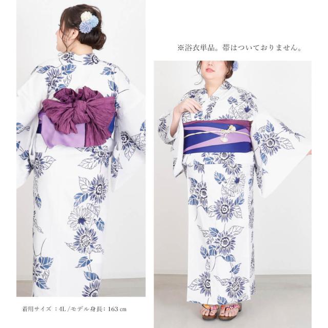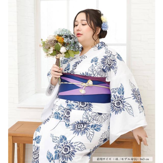 浴衣 大きいサイズ レディース ゆかた 大人 浴衣単品 3L 4L ぽっちゃり ふくよかさん向け 大きい 紺 向日葵