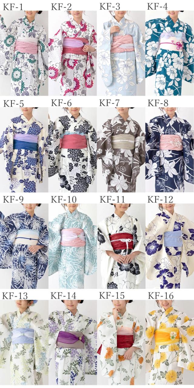 浴衣の柄は、大正ロマン風・レトロ・かわいい花柄など、選ぶのが楽しくなる全16タイプをご用意!