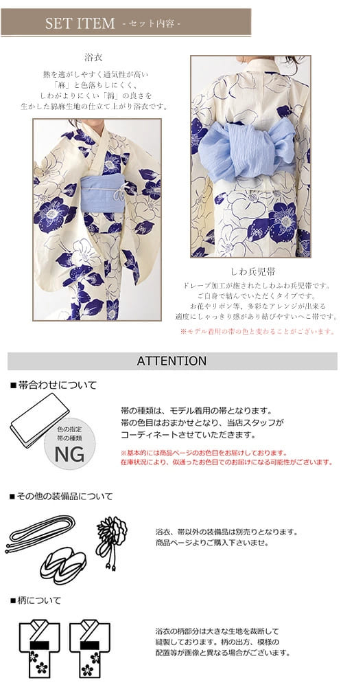 ※帯はモデル着用の帯を基本的には浴衣に合わせてコーディネイト致します。