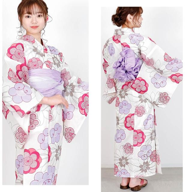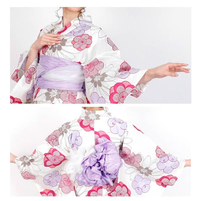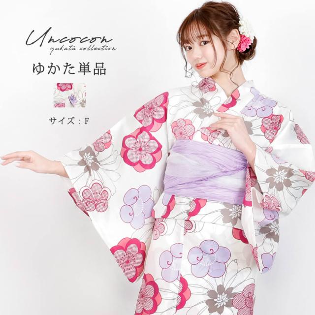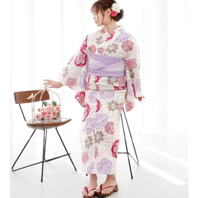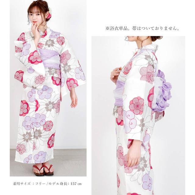 浴衣 レディース 女性浴衣 単品 浴衣単品 仕立て上がり 浴衣レディース 女性用 白 ホワイト 紫 赤紫 梅の花 鹿の子 花柄