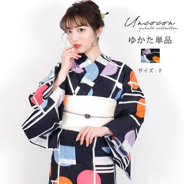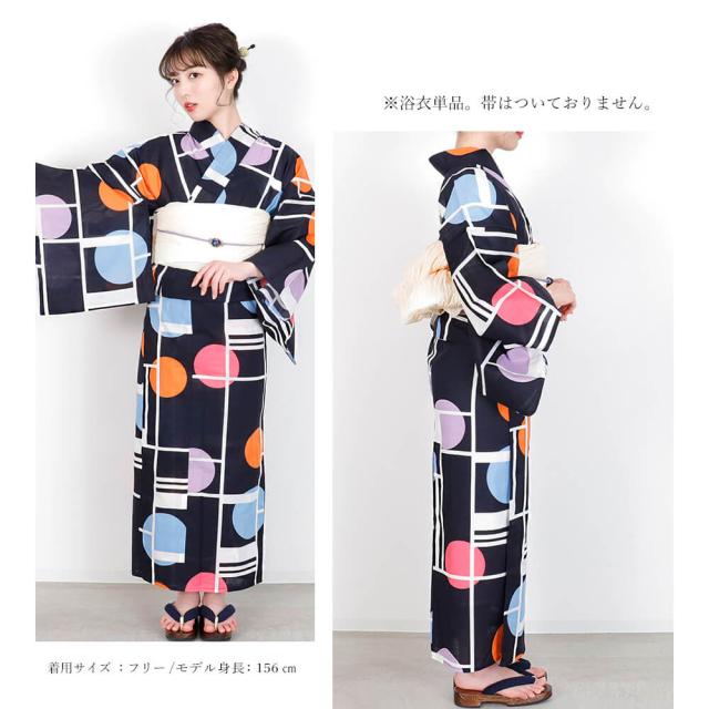 浴衣 レディース 女性浴衣 単品 浴衣単品 仕立て上がり 浴衣レディース 女性用 紺 ネイビー オレンジ ドット 水玉 お洒落