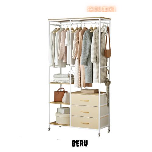 SINNONAKA ハンガーラック 引き出し付き ワードローブ 衣装棚 押し入れ 棚付き 棚板可動式 収納付き 収納ラック 大容量 頑丈 wardrobe 全