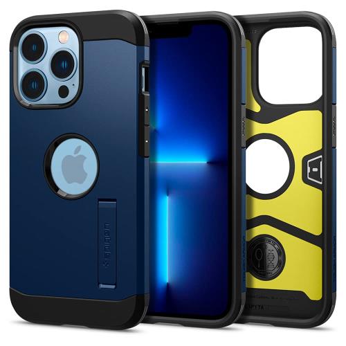 Spigen iPhone13Proケース 衝撃吸収 米軍MIL規格取得 おしゃれ 3層構造 スタンド付き カメラ保護 傷防止 ワイヤレス充電対応 タフ・アーマー ACS03279 (ネイビー・ブルー)