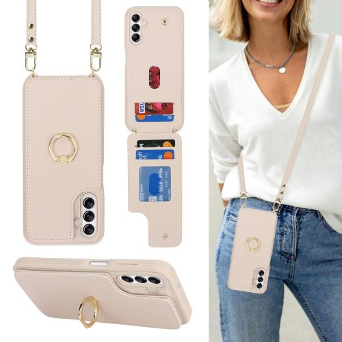 Cavor Galaxy A14 5G スマホケース ショルダー Galaxy A14 5G スマホ 携帯 用 ケース ショルダー クロスボディ 肩掛け 首かけ 斜めがけ ショルダー ケース 背面ポケット付き上下開Galaxy A14 5G 財布型ケースRFID機能Galaxy A14 5G case カード収納 360°回転リング 可愛い磁気機能-ホワイト