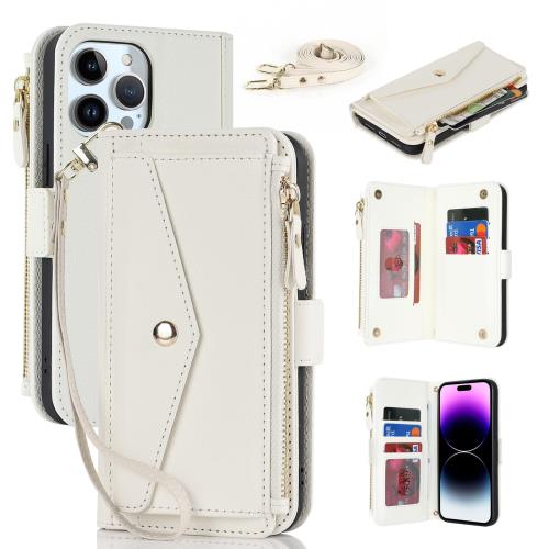 iPhone 14 Pro Max スマホケース 手帳型 アイフォン 14 Pro Max お財布型 携帯ケース iphone 14 Pro Maxおしゃれ 肩掛け 首かけ 斜めがけ ステント機能 カード収納 小銭入れ-ホワイト