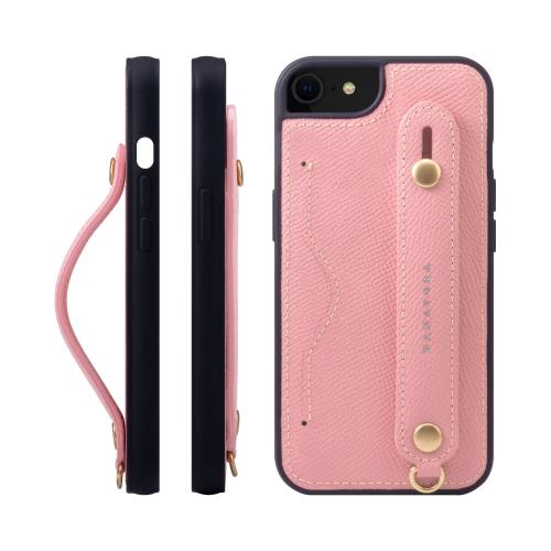 HANATORA iPhone8 7 SE3 SE2 (第3世代 第2世代) ケース 本革 耐衝撃 背面ベルト カードポケット スマホケース スマホ スタンド機能 ネック ストラップ 付き エンボスレザー ギフト マグネットなし ピンク NCGH-8SE-Pink