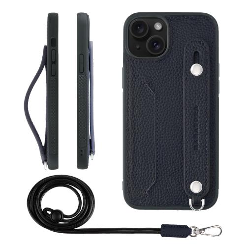 HANATORA iPhone15Plus ケース 本革 耐衝撃 背面ベルト ストラップリング スマホケース スマホ スタンド機能 ネックストラップ 付き カードポケット シュリンクレザー ギフト ネイビー CGHGZ-15Plus-Navy