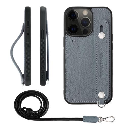 HANATORA iPhone13Pro ケース 本革 耐衝撃 背面ベルト ストラップリング スマホケース スマホ スタンド機能 ネックストラップ 付き カードポケット シュリンクレザー ギフト ブルーグレー CGHGZ-13Pro-BlueGray