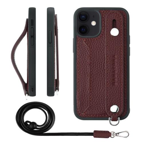 HANATORA iPhone12mini ケース 本革 耐衝撃 背面ベルト ストラップリング スマホケース スマホ スタンド機能 ネックストラップ 付き カードポケット シュリンクレザー ギフト ワイン CGHGZ-12mini-Wine
