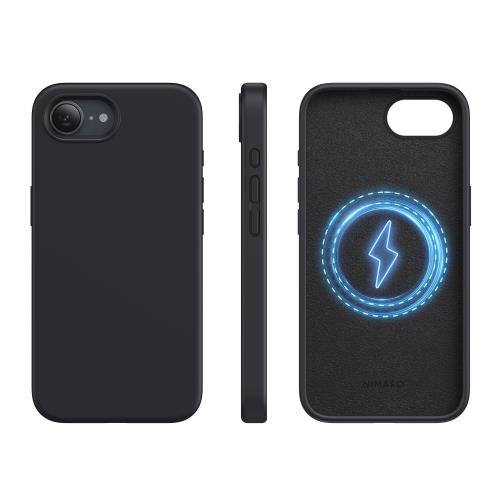 NIMASO iPhone 16e 用 ケース MagSafe対応 シリコン 全面保護 耐衝撃 米軍MIL規格 SGS認証 さらさら手触り 薄型 バンパー 指紋防止 傷付き防止 マグネット搭載 マグセーフ対応 保護カバー ワイヤレス充電対応 アイフォン16e対応(6.1インチ)スマホケース(月見シリーズ)ブラック NSC24L1562