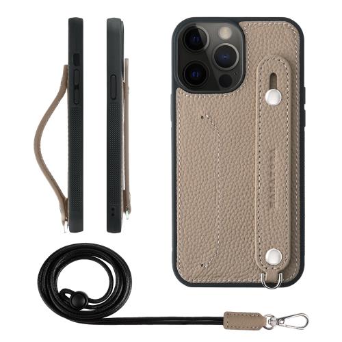 HANATORA iPhone13ProMax ケース 本革 耐衝撃 背面ベルト ストラップリング スマホケース スマホ スタンド機能 ネックストラップ 付き カードポケット シュリンクレザー ギフト グレージュ CGHGZ-13ProMax-Grege