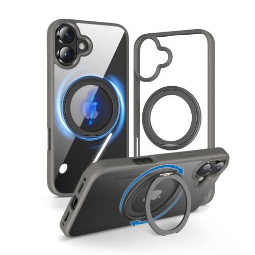 360度回転スタンド・縦横両対応KATSUTOYO いphone 16plus 用 ケース 黄ばみにくい iphone 16 plus 用 ケース 強磁力リング マグネット搭載 360°回転スタンド 縦横両対応 MagSafe対応 高耐久性 米軍MIL規格 耐衝撃 指紋防止 アイホン16プラスケース(6.7インチ)背殻クリア グレー