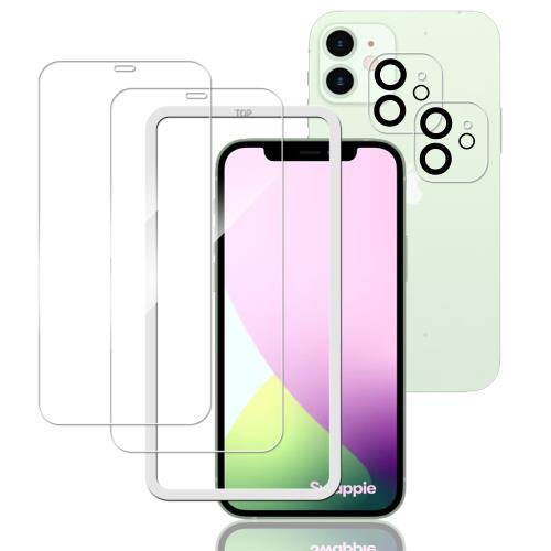 KPNS ガラスフィルム iPhone12 用 (2枚)ガラスフィルム + (2枚)カメラフィルム + ガイド枠付き 日本旭硝子素材採用 全面 保護フィルム 強化ガラス フィルム カメラ保護 レンズカバー 対応