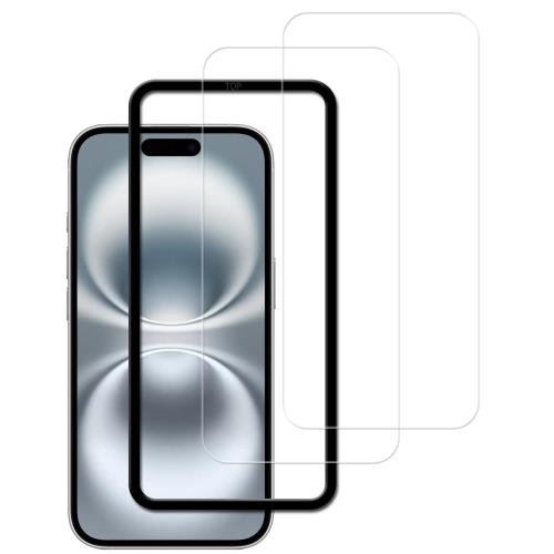 KPNS ガラスフィルム iPhone15/16 用 (2枚)ガラスフィルム + ガイド枠付き 日本旭硝子素材採用 全面 保護フィルム 強化ガラス フィルム
