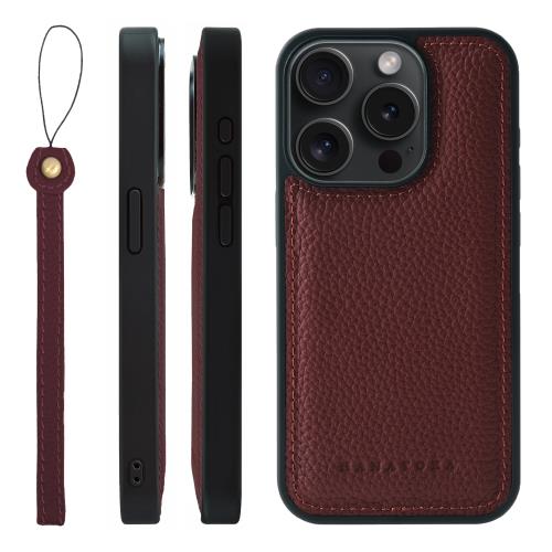 HANATORA iPhone15Pro ケース MagSafe 対応 本革 耐衝撃 バンパー型 スマホケース スマホ ストラップ 付き シュリンクレザー ギフト マグセーフ対応 ワイン SMSGZ-15Pro-Wine