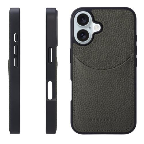 HANATORA iPhone16Plus ケース 本革 耐衝撃 スマホケース スマホ コードホルダー 付き シュリンクカーフレザー ギフト マグネットなし オリーブグレー CPG-16Plus-OliveGray