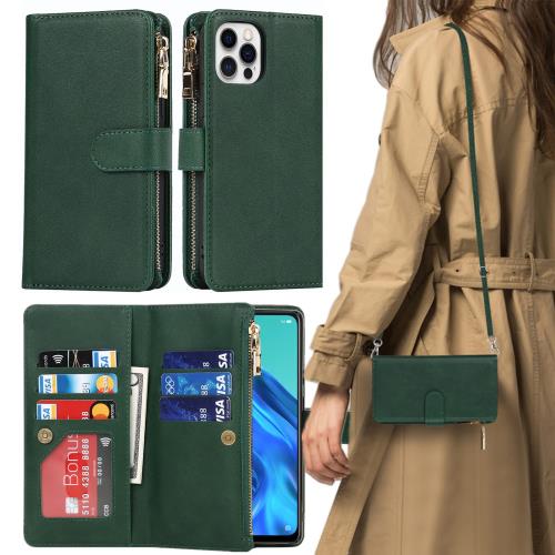 iPhone12 ケース / iPhone12 pro ケース 手帳型 ショルダー クロスボディ 通用 iPhone 12 iPhone12 pro 手帳型 カバー アイホン12 アイホン12pro アイホン12プロ アイフォン12 アイフォン 12プロ ケース アイフォン 12pro アイフォン 12 pro アイフォン12pro 12 プロ 適用 case iCoverCase ストラップホール付き カード バッグ マグネット 肩がけ 首掛け 斜め掛け カードケース ファスナー ストラップ付き カバー ショルダーケース カード入れ スマホケース 携帯カバー 深い緑 ダークグリーン