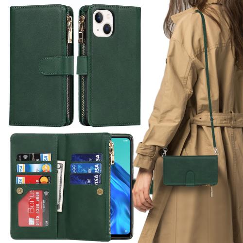 iPhone13ケース / iPhone13 ケース 手帳型 ショルダー クロスボディ アイホン iPhone 13 ケース 手帳型 カバー アイフォン13 アイフォン 13 ケース iPhone13手帳ケース 適用 case iCoverCase ストラップホール付き カード収納 バッグ マグネット 留め具 肩がけ 首掛け 斜め掛け カードケース ファスナー型 ストラップ付き カバー ショルダーケース クロスボディケース カード入れ スマホケース 携帯カバー 深い緑 ダークグリーン
