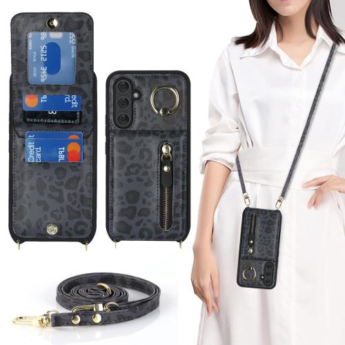 A54 5g galaxy ケース ショルダー 手帳型 上下開 ショルダーケース ポシェット ストラップケース リング付きケース galaxyA54 リング付き リング Galaxy A54 5G ケース SC-53D A545G docomo / SCG21 ケース au SIMフリー 全対応 A54ケース サムスン ギャラクシー A54 カバー SC53D ケース SCG21 カバー スマホケース A54ケース 適用 case iCoverCase ストラップ カードケース カード収納 横置き スタント 肩がけ 首掛け 斜め掛け ファスナー ストラップ付き ショルダーケース カード入れ カバー スマホケース 携帯カバー 豹柄 ヒョウ柄 ブラック