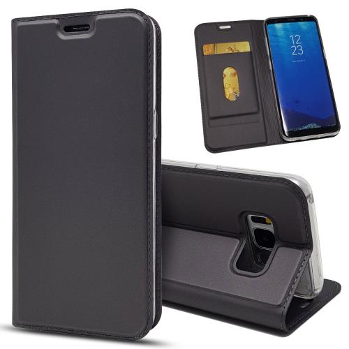 iCoverCase Galaxy S8+ SC-03J /SCV35ケース Galaxy S8 plus ケース 手帳型 ギャラクシー S8プラス スマホケース SC-03J ケース SCV35 ケース SC-03J カバー カードポケット case 内蔵マグネット マグネット式 スタンド機能 軽量 超薄型 耐摩擦 ブラック 薄い黒 ライトブラック