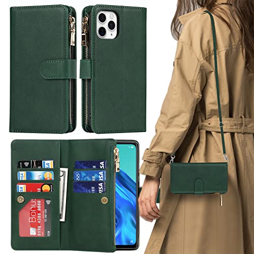 iPhone11 pro ケース 手帳型 ショルダー クロスボディ iPhone11pro アイフォン11 pro ケース アイホン 11proケース iPhone 11 pro ケース アイフォン11pro ケース アイフォン 11 プロ カバー アップル アイホン11プロ 携帯ケース 11プロ アイフォン11プロ スマホケース 手帳型 適用 case iCoverCase ストラップホール付き カード収納 バッグ マグネット 留め具 肩がけ 首掛け 斜め掛け カードケース ファスナー型 ストラップ付き カバー ショルダーケース クロスボディケース カード入れ スマホケース 携帯カバー 深い緑 ダークグリーン
