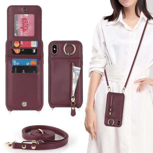 iPhone X / iPhone XS ケース ショルダー リング付きケース ストラップケース 背面フリップ 手帳型 上下開 iphoneX iphoneXS ショルダーケース リング ポシェット 通用 iphone10 iphone10s ケース アイフォンX ケース スマホケース アイフォン X アイフォンXS ケース アイフォン XS case カバー アイホンX アイホンXS アイホン 10 アイホン 10S ケース アイフォン10 アイホン10 アイフォン10s アイホン10s iPhone 10 10s ケース 適用 iCoverCase リング付き カードケース カード収納 スナップ式 横置き スタント 肩がけ 首掛け 斜め掛け ファスナー ストラップ付き ショルダーケース カード入れ カバー スマホケース 携帯カバー ワインレッド