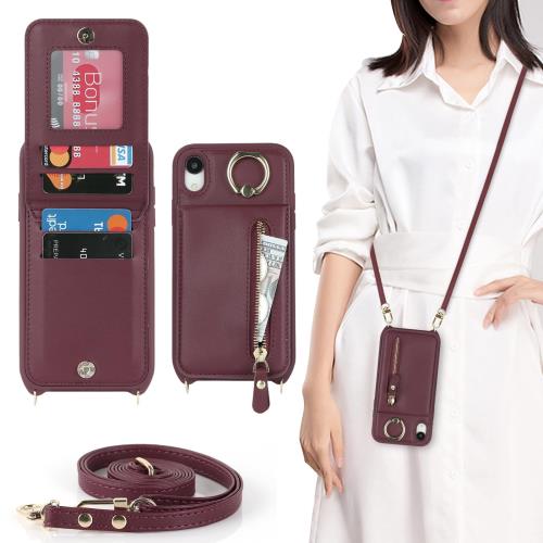 iPhone XR ケース 手帳型 ショルダー リング付きケース ストラップケース 背面フリップ 手帳型 上下開 iphone10R ショルダーケース リング ポシェット iPhoneXRケース アイホン10rケース アイフォン10rケース iPhone10rケース アイホン10r アイフォン10r アイフォン アイホン 10r iPhoneXR ケース iphonexrスマホケース アイフォン xr ケース 手帳ケース アイホン XR ケース CASE アイフォンXR ケースカバー 適用 iCoverCase リング付き カードケース カード収納 スナップ式 横置き スタント 肩がけ 首掛け 斜め掛け ファスナー ストラップ付き ショルダーケース カード入れ カバー スマホケース 携帯カバー ワインレッド