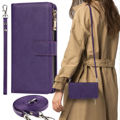 OPPO A54 5G ケース 手帳型 ショルダー クロスボディ oppo A54 ケース OPG02 ケース au と UQ mobile 対応 オッポ A54 5G カバー A545Gケース oppoA54 OPG02 カバー スマホケース a54 5g ケース 手帳型 適用 case iCoverCase ストラップホール付き カード収納 バッグ マグネット 留め具 肩がけ 首掛け 斜め掛け カードケース ファスナー型 ストラップ付き カバー ショルダーケース クロスボディケース カード入れ スマホケース 携帯カバー パープル
