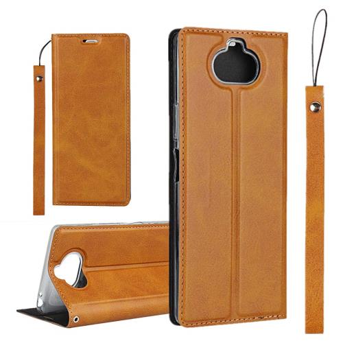SONY Xperia 8 ケース SOV42 au/ワイモバイル/SIMフリー 対応 手帳型 エクスぺリア 8 カバー xperia8 ケース ソニー エクスぺリア8 手帳 スマホケース case iCoverCase 内蔵マグネット 磁気閉鎖 ベルトなし スマホケース カード入れ付き スタンド機能 軽量 スプラットホール付き スプラット同梱 落ち着いた ライトブラウン