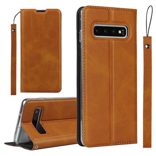 Galaxy S10 ケース SCV41 SC-03L 対応 エス10 カバー サムスン ギャラクシー S 10 スマホケース 携帯カバー 手帳型 カバー 財布 case iCoverCase 内蔵マグネット 磁気閉鎖 ベルトなし スマホケース カード入れ付き スタンド機能 軽量 スプラットホール付き スプラット同梱 落ち着いた ライトブラウン