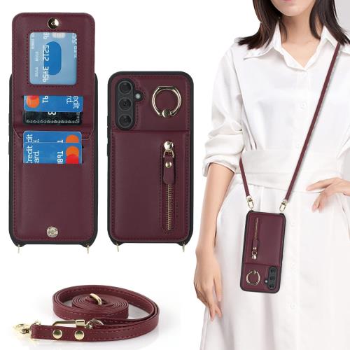A54 5g galaxy ケース ショルダー 手帳型 上下開 ストラップケース リング付きケース galaxyA54 リング付き リング Galaxy A54 5G ケース SC-53D ケース A545G docomo SCG21 ケース au SIMフリー 全対応 A54ケース サムスン ギャラクシー A54 カバー SC53D ケース SCG21 カバー スマホケース A54ケース 適用 case iCoverCase ストラップ カードケース カード収納 スナップ式 横置き スタント 肩がけ 首掛け 斜め掛け ファスナー ストラップ付き ショルダーケース カード入れ カバー スマホケース 携帯カバー ワインレッド