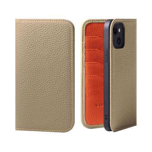 HANATORA iPhone14Plus ケース 手帳型 本革 スマホケース スマホ スタンド コードホルダー 付き シュリンクカーフレザー ギフト マグネットなし グレージュ + オレンジ PH-14Plus-Grege-OG 父の日ギフト 父の日 ギフト 誕生日 人気商品 お父さん 服 30代 40代 50代 60代 70代