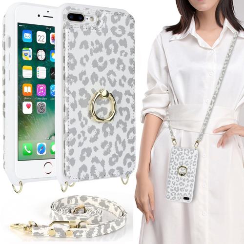 iPhone7plus / iPhone8plus ケース ショルダー リング付きケース ストラップケース カードケース 背面 手帳型 上下開き ストラップ付き カバー iphone 7 plus 8 plus ショルダーケース リング ポシェット アイホン 7プラス 8プラス iphone7プラス iphone8プラス ケース アイフォン7plus スマホケース アイフォン 7plus アイフォン8plus アイフォン 8plus case カバー アイホン7plus アイホン8plus アイフォン7プラス アイホン7プラス アイフォン8プラス アイホン8プラス ケース 適用 iCoverCase リング付き カードケース カード収納 スタンド 肩がけ 首掛け 斜め掛け カード入れ 携帯カバー 豹柄 ヒョウ柄 ホワイト