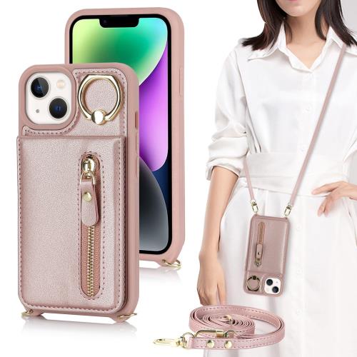 iPhone 15 Plus ケース iPhone 14 Plus 通用ケース ショルダー ストラップ付き ショルダーケース 背面フリップ 上下開 手帳型 アイホン15プラス カバー iPhone 15plus スマホケース アイフォン15 プラス case 適用 iCoverCase リング付き カード収納 縦置き 横置き スタンド 肩がけ 首掛け 斜め掛け 携帯カバー ピンク