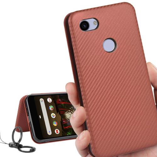 Google pixel 3a ケース pixel3a ケース ピクセル 3a カバー グーグル pixel3a カバー グーグルpixel3a 対応 スマホケース ピクセル3a 手帳型 カバー 財布 ケース case iCoverCase 外:炭素繊維 ハードケース カバー 内:TPUケース 耐衝撃 携帯カバー スマホケース 指紋防止 軽量 ストラップ 同梱 ブラウン