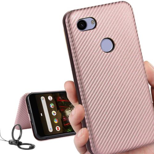 Google pixel 3a ケース pixel3a ケース ピクセル 3a カバー グーグル pixel3a カバー グーグルpixel3a 対応 スマホケース ピクセル3a 手帳型 カバー 財布 ケース case iCoverCase 外:炭素繊維 ハードケース カバー 内:TPUケース 耐衝撃 携帯カバー スマホケース 指紋防止 軽量 ストラップ 同梱 ピンク