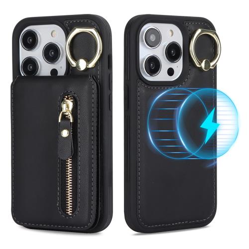 iPhone 13 Pro ケース 分離可 カードケース リング付きケース magsafe対応ケース マグセーフ magsafe用 アイホン13 プロ リング付き カバー スマホケース アイフォン 13pro アイフォン13 プロ case 適用 iCoverCase リング カード収納 スナップ 横置き スタンド マグネット ファスナー カード入れ 携帯カバー ブラック