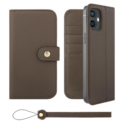 HANATORA iPhone12mini ケース 手帳型 本革 スマホケース スマホ スタンド ストラップ 付き シュリンクカーフレザー ギフト ベルトあり マグネットなし トープ H0XB-12mini-Taupe 父の日ギフト 父の日 ギフト 誕生日 人気商品 お父さん 服 30代 40代 50代 60代 70代