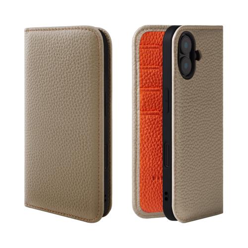 HANATORA iPhone16Plus ケース 手帳型 本革 スマホケース スマホ スタンド コードホルダー 付き シュリンクカーフレザー ギフト マグネットなし グレージュ + オレンジ PH-16Plus-Grege-OG 父の日ギフト 父の日 ギフト 誕生日 人気商品 お父さん 服 30代 40代 50代 60代 70代
