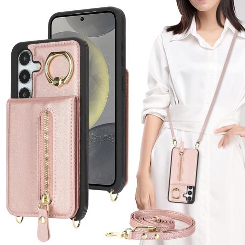 Galaxy S24 ケース ショルダー ストラップ付き ショルダーケース 背面フリップ 上下開 手帳型 Galaxy S24 SC-51E docomo SCG25 au SIMフリー 対応 サムスン ギャラクシーS24 カバー case 適用 iCoverCase リング付き カード収納 縦置き 横置き スタンド 肩がけ 首掛け 斜め掛け 携帯カバー ピンク