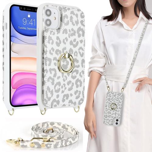 iPhone 11 ケース 手帳型 上下開き ストラップ付き カバー ショルダー リング付きケース アイホン11 リング付き ショルダーケース リング iPhone11 ケース iphone11スマホケース iphone11手帳型 アイフォン 11 ケース 手帳ケース アイホン 11 ケース CASE アイフォン11 ケースカバー 適用 iCoverCase カードケース カード収納 スナップ スタンド 肩がけ 首掛け 斜め掛け カード入れ 携帯カバー 豹柄 ヒョウ柄 ホワイト