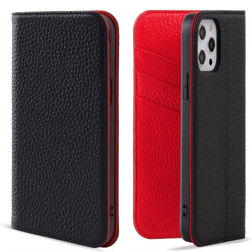 VISOUL iPhone 12 ケース 手帳型 本革 iPhone 12 Pro ケース レザー スマホケース カード収納 携帯ケース 全面保護 マグネット 横置きスタンド機能付きケース iphone 12Pro/12対応 6.1インチ シュリンクレザー iPhone 12 Pro レッド