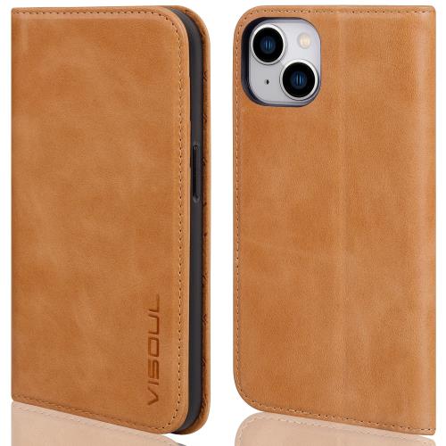 VISOUL iPhone14 ケース 手帳型 本革 カードポケット アイフォン14 ケース 手帳型 本革 レザー スマホケース iPhone 14 手帳ケース カード収納 衝撃吸収TPU素材 携帯ケース 全面保護 マグネット 横置きスタンド iphone 14 対応 6.1インチ キャメル