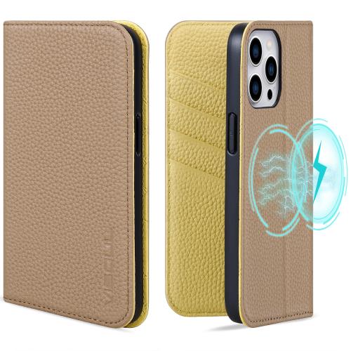 VISOUL iPhone 15 ProMax ケース 手帳型 本革 MagSafe対応 アイフォン15プロマックス ケース レザー 全面保護 マグネット式 カード収納 横置きスタンド機能 6.7インチ対応 スマホケース アイホン15ProMax ベージュ レモン