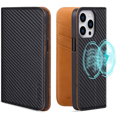 VISOUL iPhone15 Pro ケース 手帳型 本革 MagSafe対応 スマホケース レザーケース 手帳型ケース アイフォン15プロ ケース カード収納 携帯ケース 全面保護 柔軟なTPU素材 マグネット式 スタンド機能付き カーボンレザー アイホン15Pro カーキ