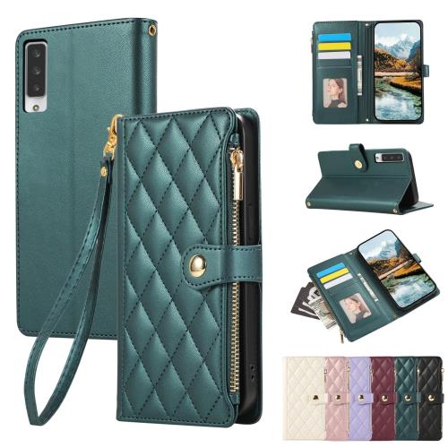 Rosbtib Arrows NX9 F-52A ケース 手帳型 f52a ケース 財布型 カバー arrows f-52a ケース ファスナー型 小銭入れ 携帯カバー カード収納 Arrows NX9 F-52A スマホケース エレガント チェック柄 刺繍 高級PUレザー 肌触り良い アローズf52a ケース ストラップ付き マグネット式開閉式 スタンド機能 全面保護(グリーン)