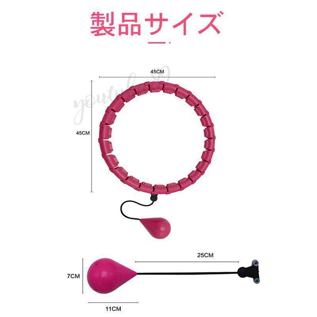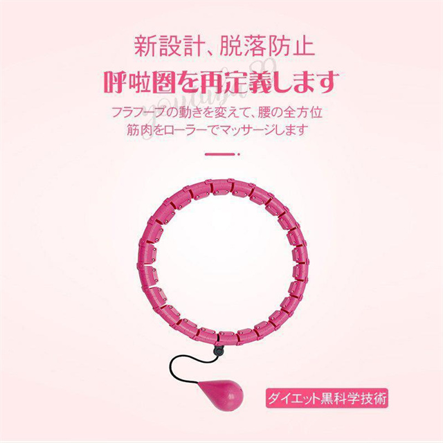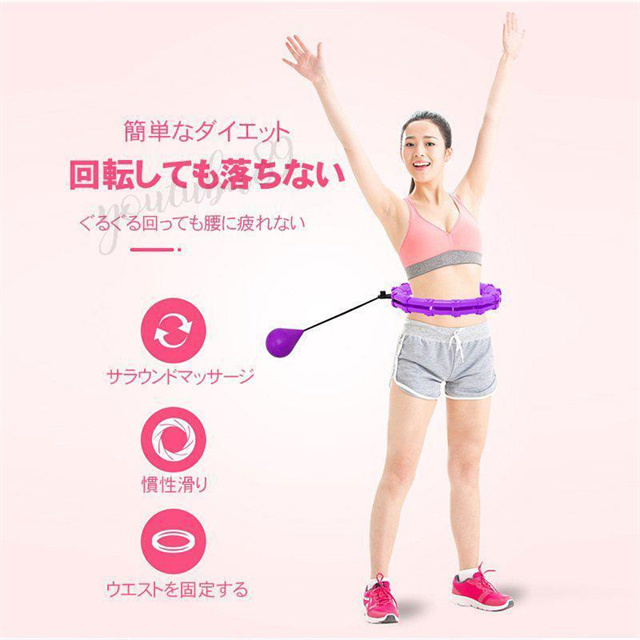 フラフープを回すことにより、太ももの引き締め、腰痛防止、骨盤矯正及び基礎代謝を高めて脂肪を燃焼させインナーマッスルが強化されてキレイなくびれ作り、 便秘解消にも効果的です!