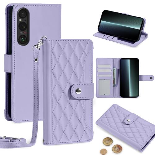 Xperia 1 VI ケース 手帳型 エクスペリア1 vi ケース so-51eケース手帳型 斜めがけ 肩掛け 首掛け スタンド機能 チェック柄 刺繍 Xperia 1 マーク 6 手帳型ケース オシャレ カード収納 耐衝撃 スマホカバー xperia 1 vi 肩掛け おしゃれ 女性 柔らかいTPU ONETHEFUL Sony Xperia 1VI 財布型 長ロープと短ロープ付き - 紫