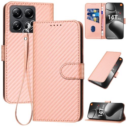 Gedurya Xiaomi 14T Pro ケース 手帳型 シャオミ14Tプロ スマホケース 炭素繊維ブレイドスタイル 肌触り良い シャオミ14T Pro ケース Xiaomi 14T Pro 携帯カバー マグネット開閉式 スタンド機能 軽量 薄型 Xiaomi 14T Pro 手帳型 ケース 指紋防止 人気 上質 Xiaomi 14Tプロ 携帯ケース 全面保護 財布型 便利 - ピンク