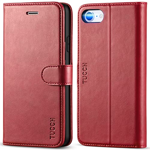 TUCCH iPhone SE 対応 ケース 第3世代 iphone se3 ケース iPhone SE2 ケース iphone8 ケース 手帳型 iphone7 ケース 耐衝撃 耐摩擦 PU合皮 財布型 アイフォン7手帳型カバー カード収納 マグネット スタンド機能 iPhone7/iPhone8/iPhoneSE2/iPhoneSE3 4.7インチ対応 ダークレッド